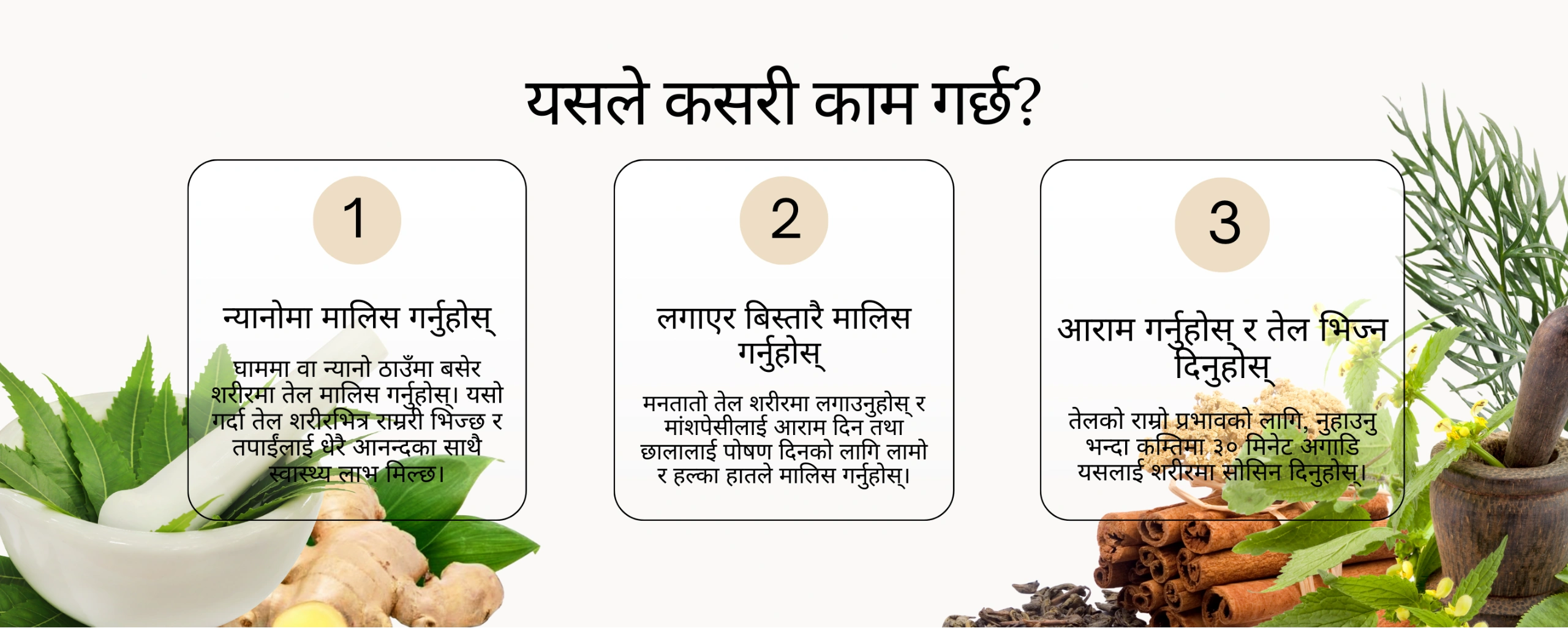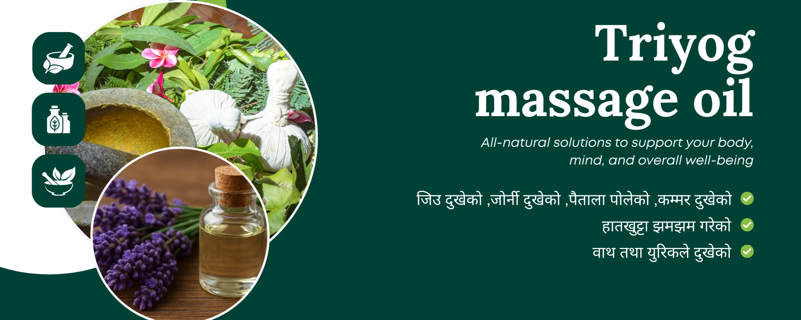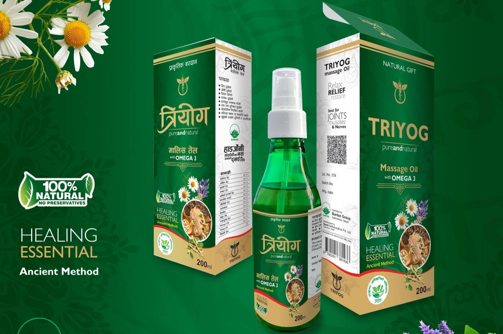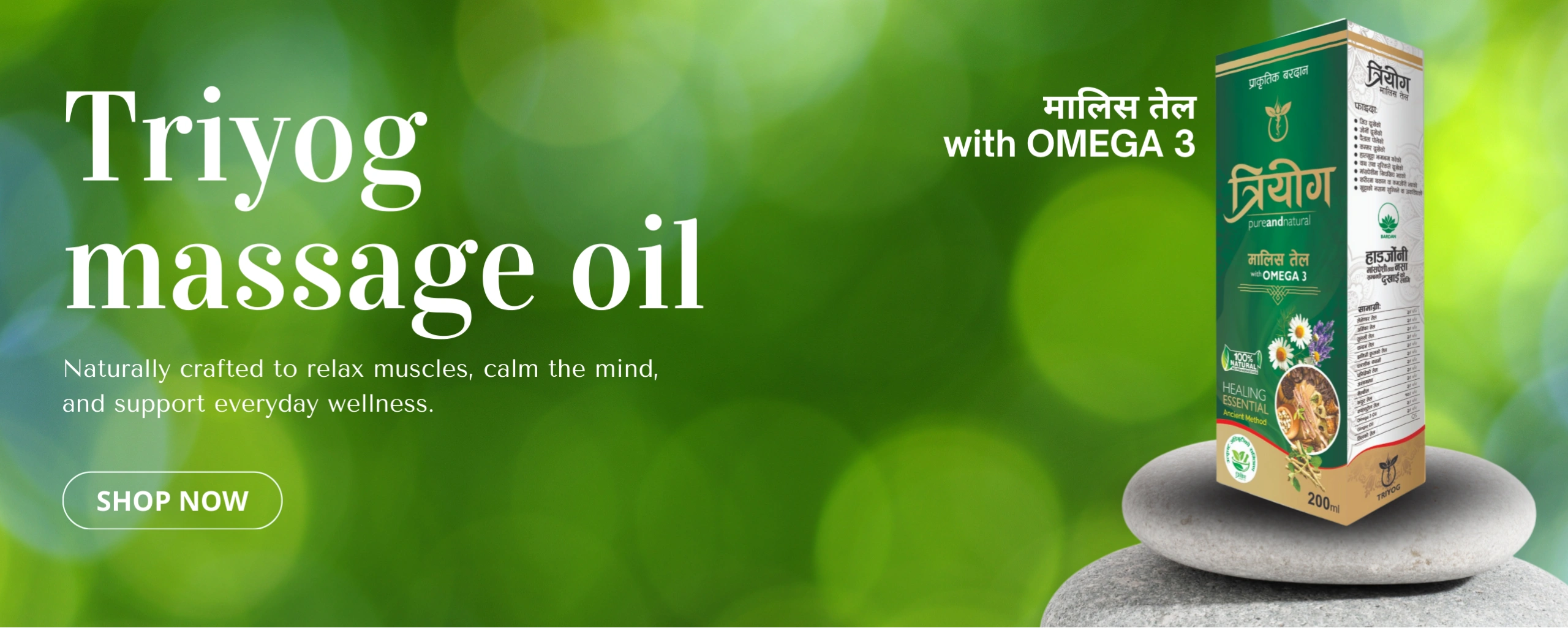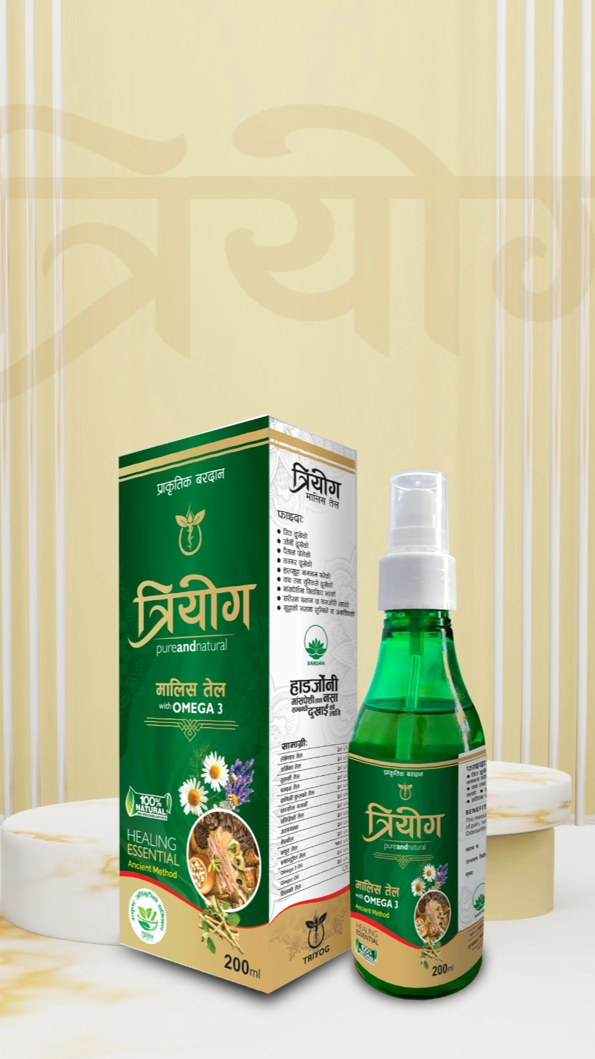त्रियोग मालिस तेल (Triyog Massage Oil) एक प्राकृतिक मिश्रण हो जसले तपाईँको शरीरलाई आराम र पुनर्ताजगी प्रदान गर्दछ। यो विशेष गरी जोर्नी, मांसपेशी र नसाहरूको दुखाइमा राहत दिन तयार पारिएको हो।